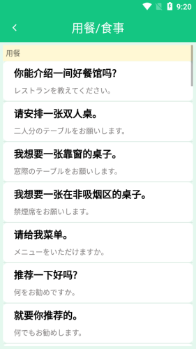 2.主要复习对象,例如,购物,天气,问候,支持一键收藏,可切换发音人,语速随意切换,搜索栏自动记忆最近常用的关键词,还支持在线搜索功能,应付所有场合。