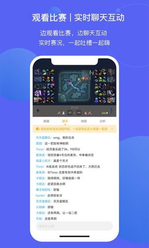 实时的电竞比分直播,让您掌握比赛信息快人一步!与比赛现场即时同步赛事数据,Ban/Pick,选手出装,KDA,一血等数据秒级更新,帮助您深入地阅读比赛和判断走势。创新性的动画直播为您带来新潮的观赛方式。