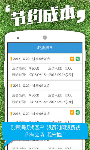 ② 联合营销,会场、餐饮、住宿联合订单,您不愁没生意。