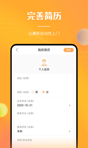 个人信息创建:填写个人基本信息,实名认证保证信息的真实性,方便接取兼职工作。