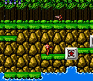 玩家在开始时持有普通冲锋枪,可以向八个方向发射,但是在得到强化武器之后会换用其他武器。玩家可以跳跃并在跳跃时用方向键控制移动和开火的方向,而且跳跃时的方向控制在游戏进程中十分重要和敌人及其发射的子弹的直接接触会造成玩家的死亡,但是他们经常充满整个屏幕,并且往各个方向移动,所以回避它们需要一些技巧。