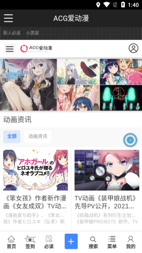ACG爱动漫app,二次元动漫分享平台。软件聚合动漫图集、游戏、音乐以及各种漫画轻小说观看,实时推送各种动漫番剧相关资讯,全方位满足二次元爱好者需求。