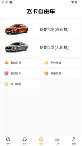 1、打开《飞卡自由车》APP并进入包车页面,可以从众多车型中选择合适的;