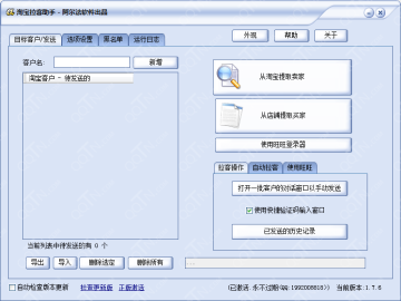 阿尔法淘宝拉客助手最新破解版本,无需注册码,直接运行就是永久正版激活。软件可以采集到淘宝市集上所有买家评论的旺旺ID,然后对提取的旺旺ID定向发送指定的内容,实现精准的营销。