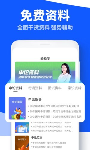 全明星教师根据考试大纲进行知识点拆解,形成四个梯度进阶的智能学习计划,行测、申论、面试、常识等公务员考试随身学,随地学。行测资料更是细分为言语、判断、资料、指导;申论资料细分为申论指导、热点时评、申论论文;面试资料细分为真题、模拟题;常识资料细分为法律常识、时事政治和其它常识。