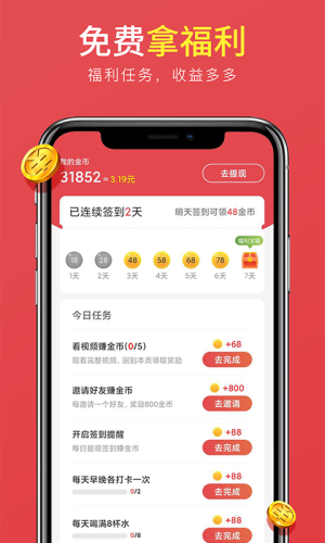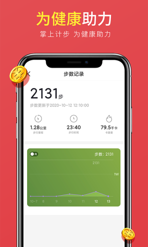本APP是一款通过记录步数的方式,让用户获得更加健康的生活的软件。本APP提供了各种活动来引导用户按时运动、喝水、睡觉等,从而使得用户拥有一个规律的生活作息和健康的生活方式。同时,用户也可以在本APP中参与各种活动来赚取奖励,并享受健康生活的乐趣。