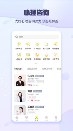平台提供心理咨询、情感倾诉、心理科普、心理测试、心理课程、情绪日记、助眠音乐等服务,做您口袋里的心灵导师。