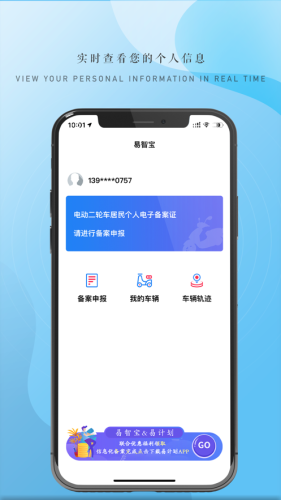易智宝app是一款电动车定位防盗助手,软件拥有精准卫星定位,异常报警,轨迹记录等等功能服务,可以帮助更好的守护电动车安全。