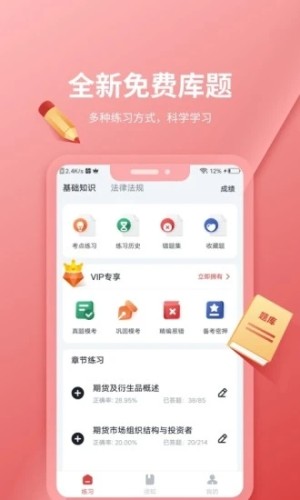 核心功能包括:考点练习、章节练习、真题模考、巩固模考、精选押题、错题练习等。可帮助考生系统的学习和检验相关知识。
