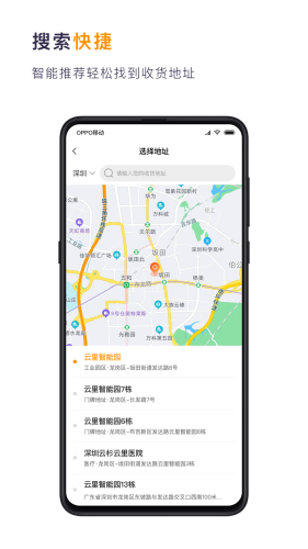 2.搜索快捷,智能推荐轻松找到收货地址;