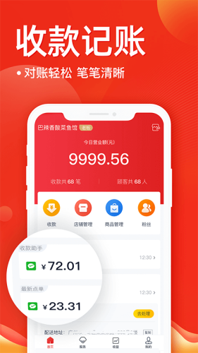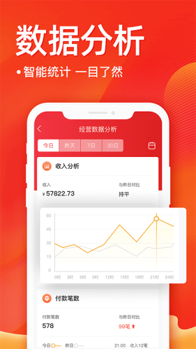 1、支持微信/支付宝/花呗/信用卡一码收款,随时随地查看收益分析