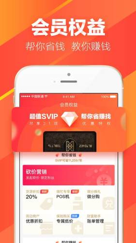 微忙是一款社交电商,综合金融为一体的电商平台,拥有这一手低价源头好货,而且还有各大银行信用卡代理,积分兑换等权限!