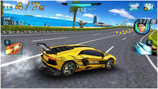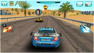 该款游戏的玩法十分简单,只需操作赛车通过竞速比赛完成关卡,同时在赛道上获得更多的金币,即可进行人物或者是车辆的升级购买。游戏总有16个车手形象可供选择,玩家在选择好人物之后即可出发,通过重力感应或手动操作的方式控制车辆的方向及转弯,与对手展开追逐,每个关卡完美通关后即可获得新车手。值得一提的是,在游戏过程中,玩家还可获得炮弹及氮气加速等道具,为前行扫除障碍。
