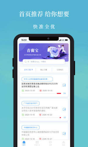 青囊宝(课题基金)app,收录大量课题基金,内容丰富,一键获取大量优质课题,在线分析基金热词,获取最新基金数据,软件支持智能消息提醒、数据查询、计划查看等功能,需要的用户欢迎前来下载体验。