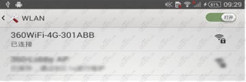 第一步:打开手机WLAN,选择360WiFi-4G-XXXXXX;输入密码,连接到4G版WiFi。