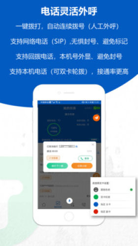 1、自动拨号:无需电脑,手机安装APP即可开展您的电销任务。