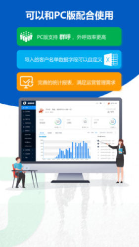 公司版:随时用手机掌控您的团队,轻松统计销售和客服电话外呼情况,有效管理和跟踪客户。