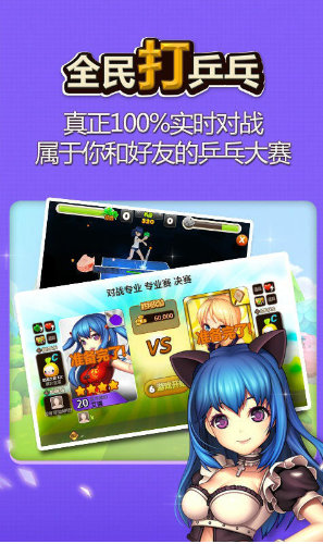 说起兵乓球那可是中国的国球之一,运动员的技术怎一个精湛了得,那球技在98年亚运会中已经是有一席之地了!全民打乒乓是韩国Bridea Smart研发,腾讯代理的一款以美少女为主题的3D乒乓球手机游戏,目前这类型的游戏在手机游戏平台上并不多见,反而棒球、高尔夫球一类的游戏非常的常见,而《全民打乒乓》则是以华丽的美少女以及简便的操作玩法为目标。