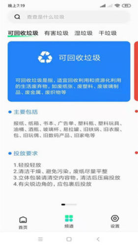 这是一款垃圾分类查询的手机应用,包含详细的各类垃圾详情介绍,还可以对各种物品垃圾进行分类查询,以及垃圾分类的流程,让你快速了解垃圾分类,让环境更美好。