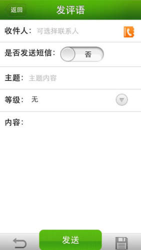 老师定期可将学生的在校表现,如学习效果、态度、方法,课堂表现,作业、纪律情况等情况进行评价,发送到家长的手机上。评语可分为每周评语、每月评语、每学期评语。 考试成绩也可以发送,真的很方便哦!