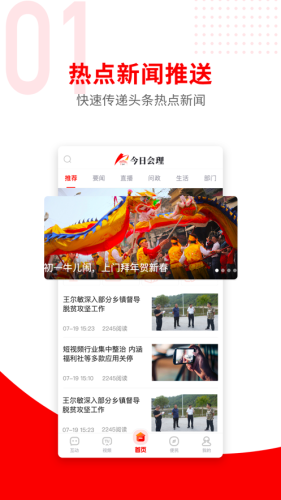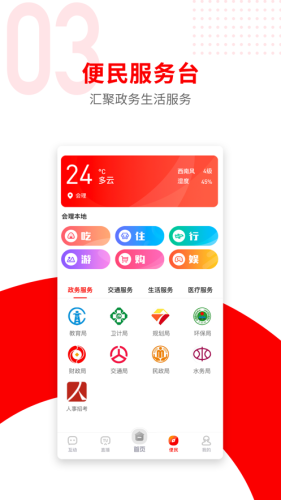 今日会理app是专为会理制作的融媒体移动平台,平台拥有新闻,互动,视频,便民等板块内容,可以帮助更好的引导及服务会理,欢迎前来下载使用。