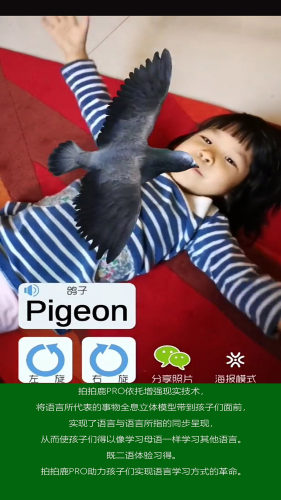拍拍鹿pro,一款AR动物英语单词学习平台。依托增强现实技术,将事物的全息立体模型融入到孩子们的生活环境中,使孩子们以沉浸式体验的方式来认识事物,寓教于乐,帮助孩子轻松学习英语单词。