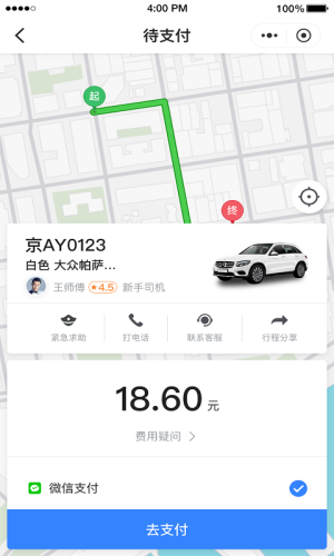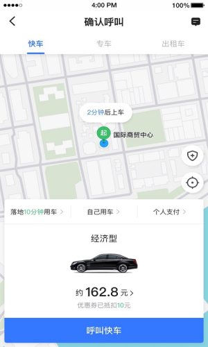 2、可以随时在线发起打车的需要,支持线上预约,接送方便;