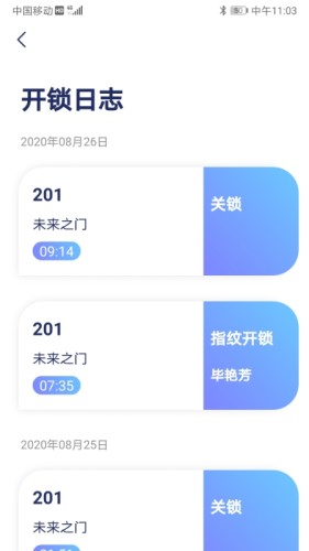 5、开锁记录查询,用户可以对自己管理的门锁的开锁记录和报警记录 数据进行查询。
