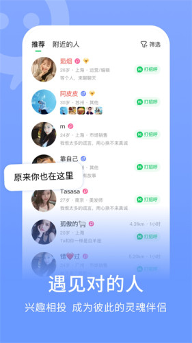 1.通过这款手机软件,你可以打开手机准确定位,找到附近的大量人群,轻松感受社交媒体的趣味性;