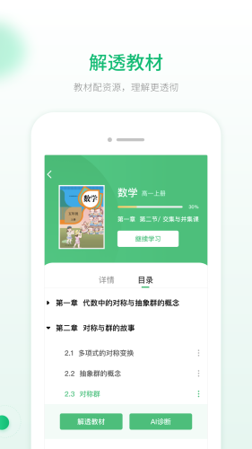 依据发展和认知心理学等学习理论,研究学生的学习过程,从学习目标导航、知识讲解与探究、典型例题分析与归纳、强化训练与测评等维度为学生提供结构化学习资源,对教材知识点进行全方位解析和训练。