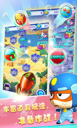 开心爱消除是由开心超人同名动画电影官方授权精心打造的一款益智消除类游戏。有强IP的单机连线休闲消除类游戏,拥有《开心宝贝》的动漫元素。
