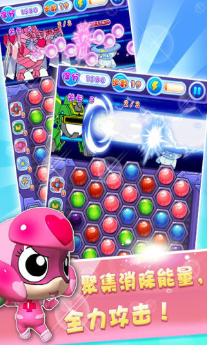 游戏为连线消除战斗玩法,连线的能量球越多单次攻击力越高,消灭怪兽就这么简单!但想更快更爽的解决怪物?!那就得精确链接能量球收集能量,召唤出更厉害的装备——机车侠来助战!