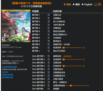 勇者斗恶龙11S风灵月影修改器是为喜欢该游戏的玩家准备的一款多功能修改器,能够为玩家带来无限生命、魔法、物品,100%暴击率等多项功能,让你的游戏体验更加轻松,感兴趣的玩家不要错过了,赶快来下载吧!