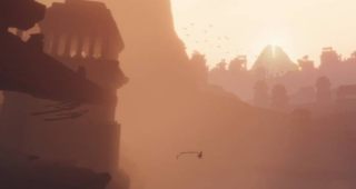 1、在黄沙与类似墓碑的东西间前行,可以通过歌唱一般唤出符文咒语与身边的物件做出简单的互动