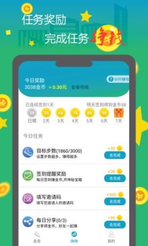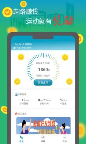 步数目标自定义,走完还能换金币,轻轻松松把钱赚,健康快乐不费力。