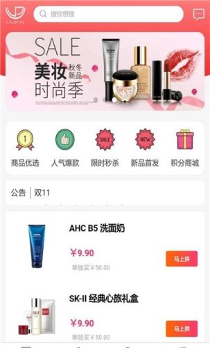 优优派购物平台,这里汇集了多种美妆护肤产品,主要用于美妆相关产品的购买;