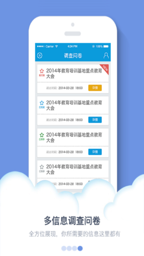 同时支持问卷的临时保存,更好的利用移动设备,在碎片时间里完成问卷。