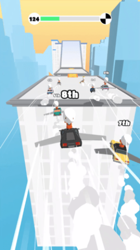 屋顶飞车竞速游戏,是一款休闲赛车竞速游戏。玩家将操控不同的赛车,在各式的屋顶上展开激烈紧张的刺激竞速之旅。比较考验玩家的操作技巧。需要灵活避开各种陷阱机关,再一口气超越对手吧。