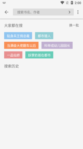 2、若是用户没有看到自己喜欢的小说,可以点击“放大镜”图标,进行搜索书名、作者,找到自己喜爱的书。