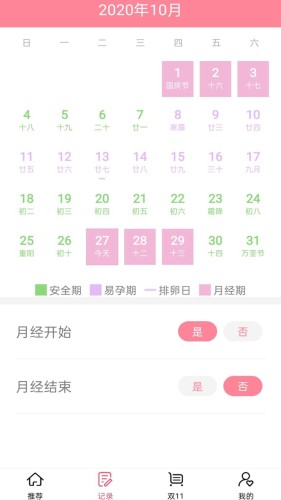 女性安全期计算器,可以查看月经期,排卵期,安全期。您贴心的生理期管理小能手。