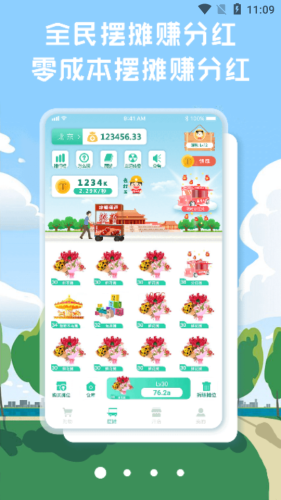 在这里你可以摆摊升级领红包,还可以在全国各地开店经营赚分红。