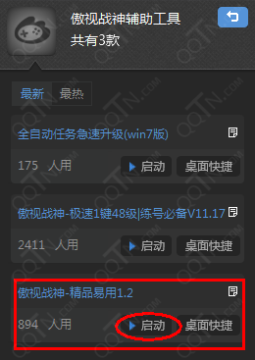 4.在傲视战神辅助工具中“启动”“傲视战神精品易用”