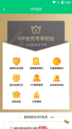 健管会员、私人健管师、健康日志、健康评估等。