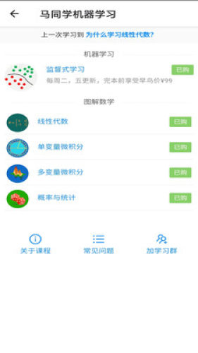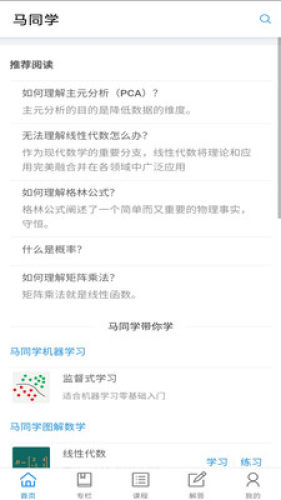 马同学app是一款机器学习软件,海量课程学习,线性代数,单变量微积分,多变量微积分,概率与统计,在线学习,在线练习,需要的可以下载马同学app使用。
