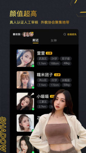 1、附近在线,用户真人刷脸认证注册,严肃认证,对假用户零容忍;