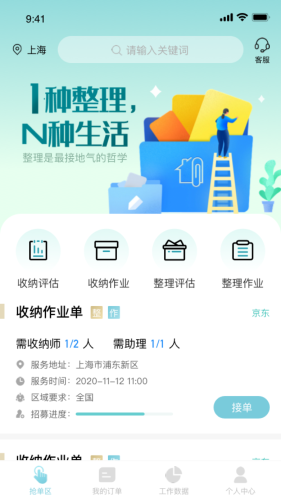 3、家政订单实时更新推送,可根据个人情况,自由在线接单;