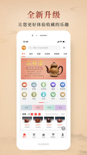 包罗紫砂壶,建盏,银壶,铜器,龙泉窑,汝窑,青瓷,瓷器等收藏品商城,名家回流壶及茶器周边产品;