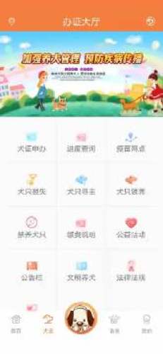 「文明养犬,科学养犬」在线申请办理犬证,等政府人员审核,领取合格的电子犬证,。