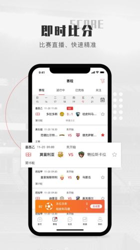 比分:提供足球篮球即时比分,包含动画直播、文字直播、技术统计、阵容数据、情报分析等。