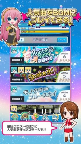 在玩家们的期待声中,音乐类游戏初音系列终于登陆安卓平台啦!《初音未来:神秘的音乐彗星》是一款音乐角色扮演游戏,收录了众多脍炙人口的“初音未来”系列的乐曲和舞台。在游戏中,玩家需要和初音未来与她的小伙伴们展开寻回失去的乐曲的冒险之旅。